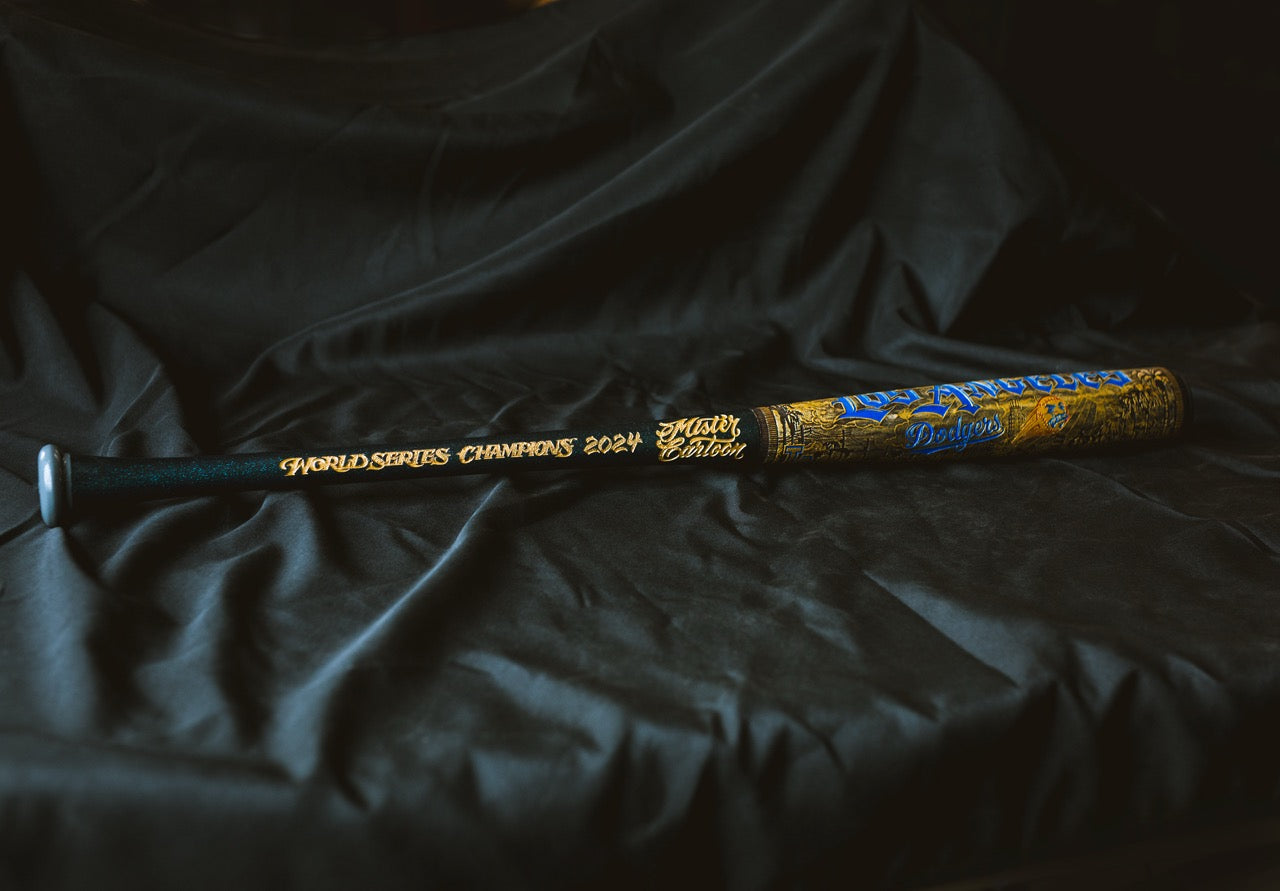 GOLD WORLD SERIES 2024 x LA DODGERS X MISTER CARTOON X PILLBOX FULL-SIZE HAND PAINTED & NUMBERED LIMITED EDITION COLLECTORS BAT
